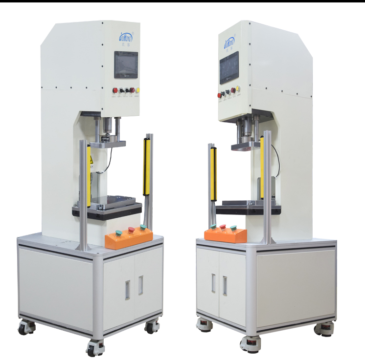 1T半弓型伺服壓力機是玖容【電動缸伺服壓力機】系列的一款產(chǎn)品,由伺服電動缸驅動,通過高精度滾珠絲桿輸出作用力,實施壓力裝配和壓力位移檢測功能的一款高精度智能壓裝設備。操作由專業(yè)開發(fā)的控制軟件保證全過程準確控制壓裝力、停止位置、壓裝速度和保壓時間等參數(shù),達到全過程數(shù)控管理。伺服電動缸可以選配1T,3T,5T,10T。