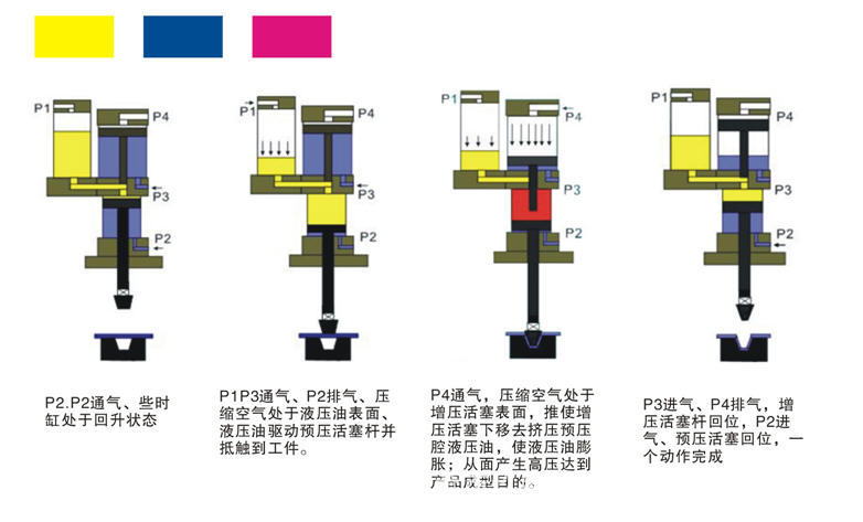 低壓提高十倍供應(yīng)油壓缸使用,從而達到成型的目的。